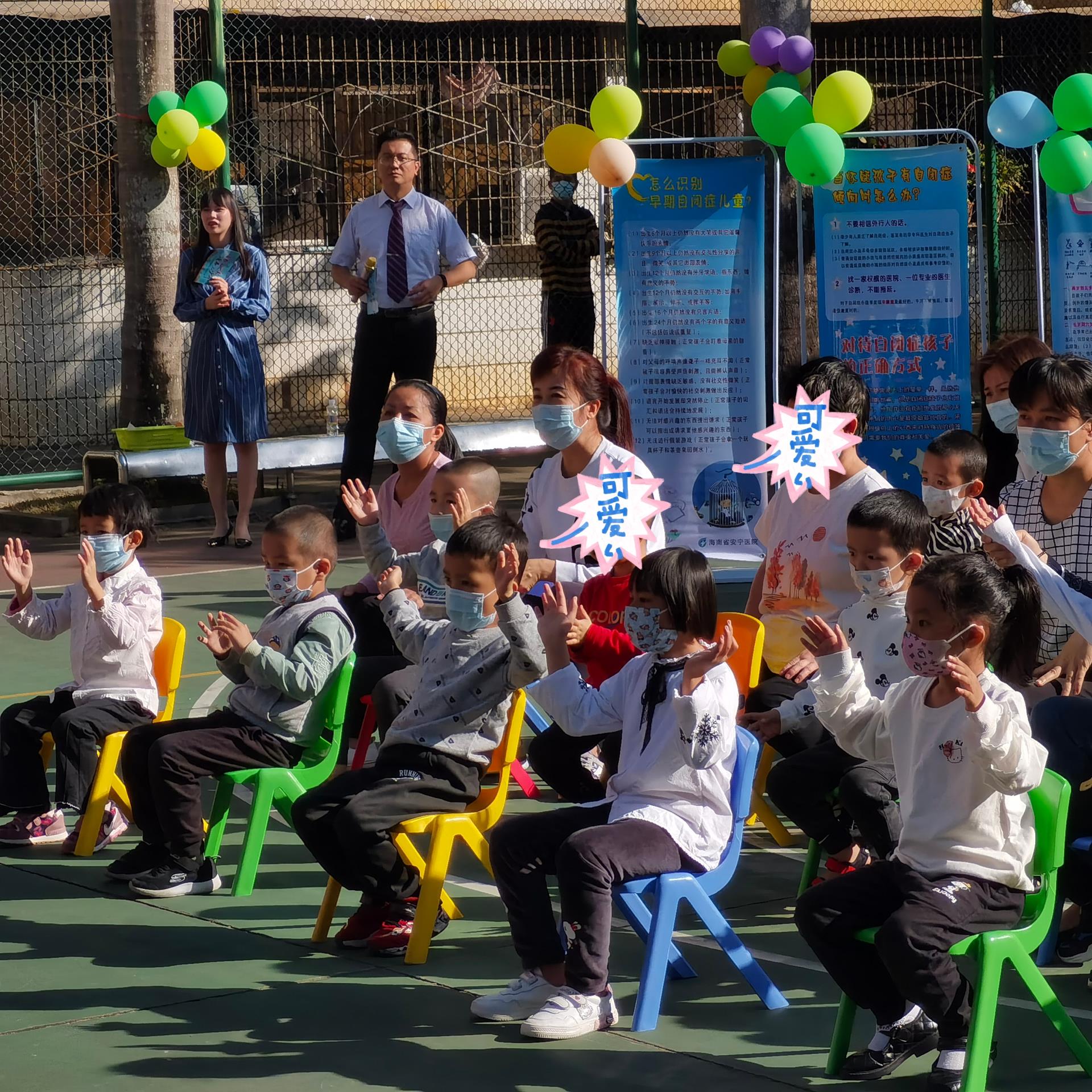 德州扑克大小 儿童康复科、海南省精神残疾人及亲友协会的工作人员还为特殊儿童们进行了文艺表演。在12月的暖阳下,残疾人工作者们跳着精心编排的舞蹈、唱着歌,只为了让孩子们度过一个难忘、愉快的节日。活泼可爱的特殊儿童们绽放出灿烂的笑脸,仿佛告诉人们——残缺的世界也可以很美好。省残联和德州扑克大小 的领导嘉宾们还为特殊儿童们准备了精美的玩具与绘本,孩子们在领到“礼物”的那一刻都兴奋地手舞足蹈。一场别开生面的儿童趣味游戏将活动推向高潮。特殊儿童和家长们默契配合,家长们耐心地向孩子们发出指令。现场一片欢声笑语。