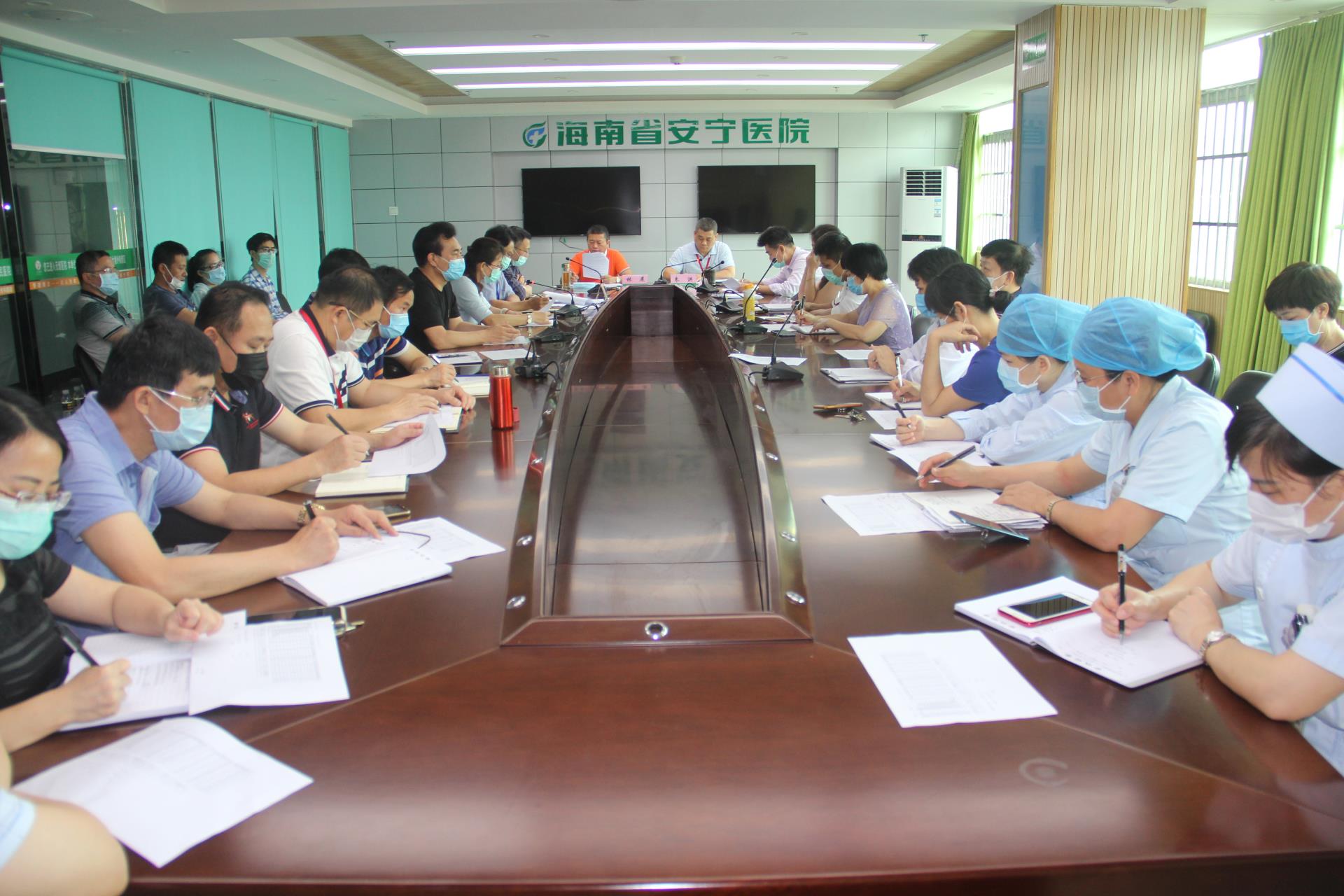 3月25日下午,德州扑克大小 在门诊办公综合楼九楼会议室召开2020年第一次院务会议。德州扑克大小 党委书记林展、院长朱洪、副院长占达飞、韩天明及各科室负责人参加会议,会议由朱洪主持。